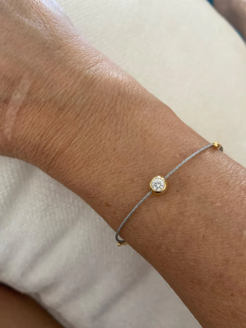 Pulseira em Fio de Polímero com Moissanite 0,10 ct em Prata 925 com Banho de Ouro 18k